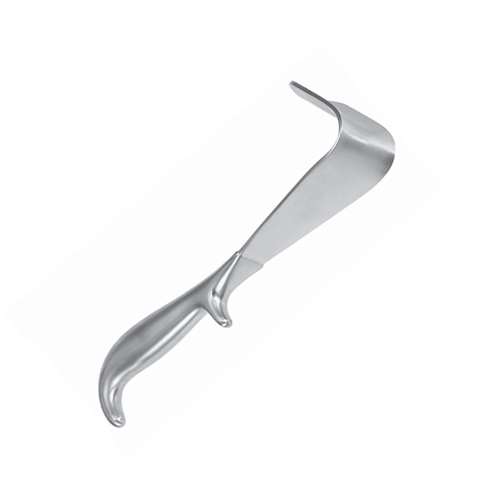 - Design:Â It features a curved, spatulate blade and a looped handle. The unique “cobra-shaped” or curved design is well-suited for retracting delicate internal organs and tissues without causing trauma, offering the surgeon an unobstructed view and access to the surgical site.
